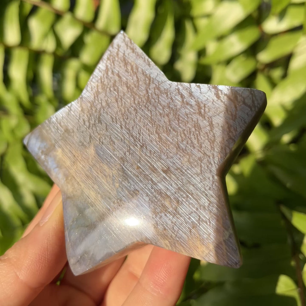 Function: Blue Moonstone Palmstone Star carries calming, intuitive, and emotionally balancing energy, symbolizing inner peace, intuition, and new beginnings. Smoothly polished into a palmstone with a star-like shimmer, it is ideal for meditation, emotional healing, and intuitive practices. Its soft blue glow helps soothe stress, balance emotions, and enhance intuition and spiritual awareness. Blue Moonstone is often used to encourage calmness, support emotional stability, promote clarity during change, and foster harmony, gentle confidence, and a peaceful connection to one’s inner self.