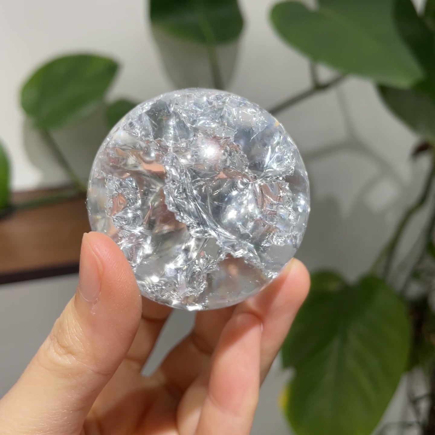 Function: Crackle Quartz Sphere features clear to milky quartz filled with natural crackle patterns that reflect light beautifully, creating a dazzling, ice-like appearance. Known for its bright and uplifting energy, Crackle Quartz is believed to amplify intentions, enhance positivity, and refresh stagnant energy. The sphere shape allows energy to flow evenly in all directions, making it a powerful and balanced piece for home décor, meditation spaces, or crystal collections.