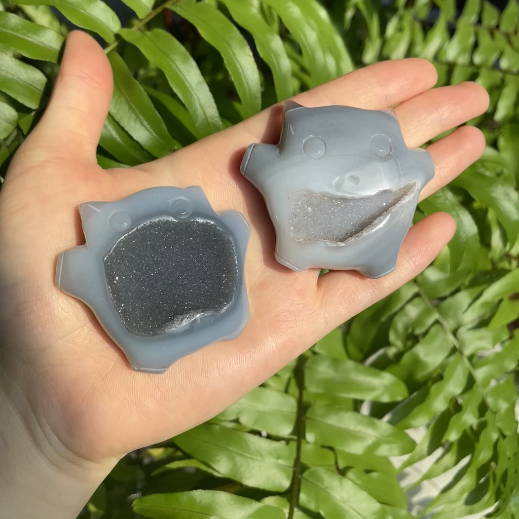 Function:Druzy Agate Carving features a naturally sparkling druzy surface combined with smooth, polished agate, creating a beautiful contrast of texture and light. The tiny crystal formations shimmer softly, symbolizing clarity and inner illumination. Agate is known for its grounding and stabilizing energy, believed to support emotional balance, protection, and a sense of calm, making this carving both visually captivating and energetically soothing.