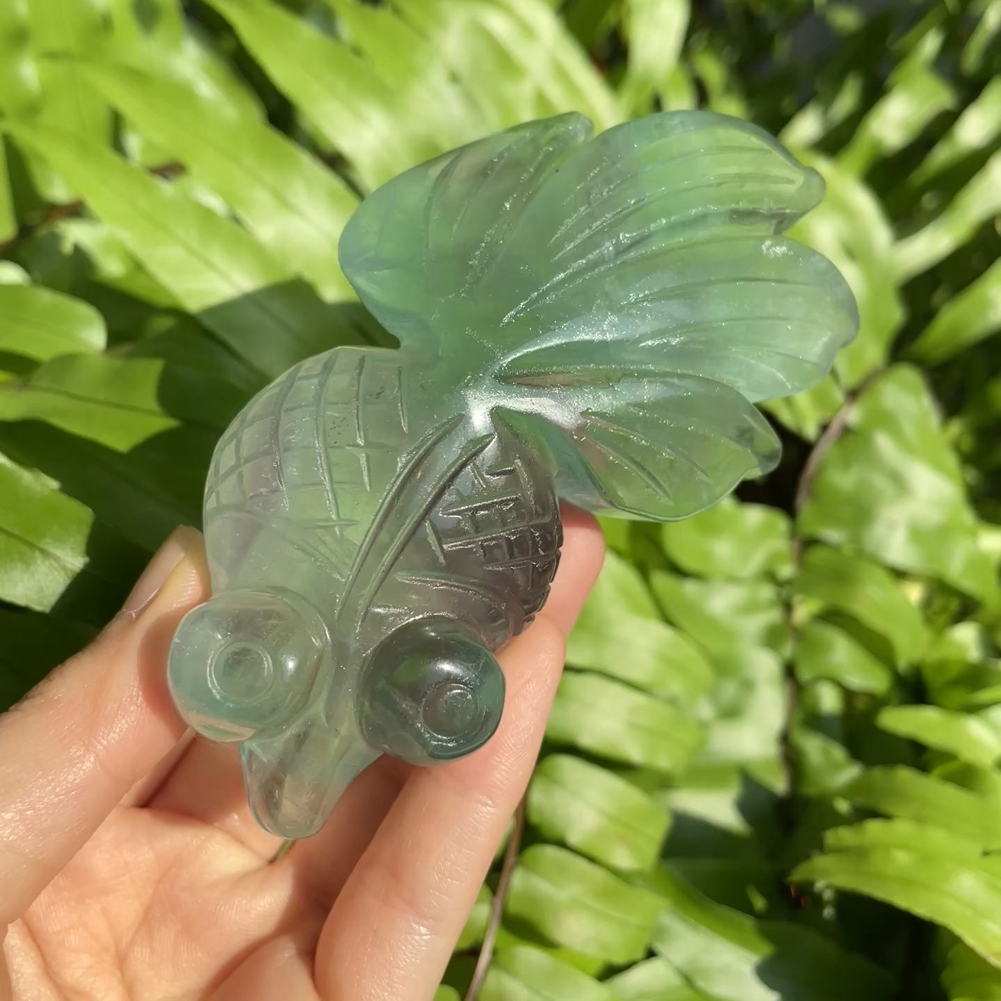 Function: Fluorite Goldfish carries clarity and protective energy, symbolizing focus, balance, and mental sharpness. Carved into the playful shape of a goldfish, it is ideal for meditation, energy work, or adding a joyful, uplifting energy to any space. Its vibrant colors encourage creativity, clear thinking, and emotional harmony, helping to dispel stress, boost concentration, and inspire positivity and personal growth.