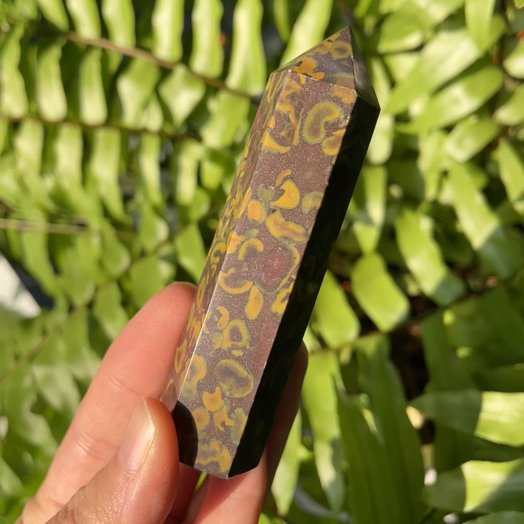 Function: Fruit Jasper Point carries nurturing, grounding, and uplifting energy, symbolizing vitality, balance, and emotional stability. Smoothly polished into a point, it is ideal for meditation, energy focus, and grounding practices. Its warm blend of reds, greens, yellows, and earthy tones helps soothe stress, enhance endurance, and promote a sense of comfort and security. Fruit Jasper is often used to encourage positivity, strengthen emotional resilience, and foster harmony, motivation, and a joyful connection to the present moment.