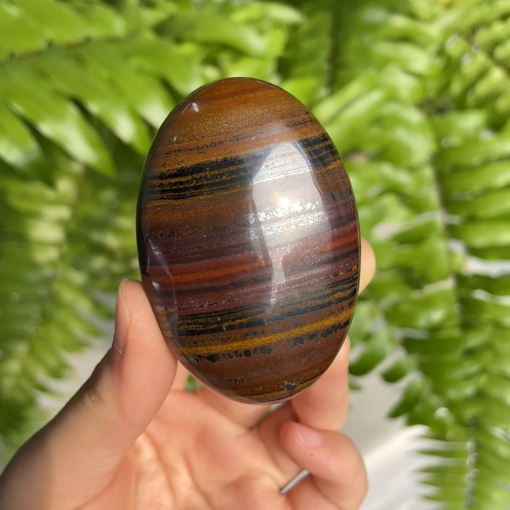 Function:Iron Tiger Eye Stone Palmstone carries a strong, grounding energy that combines the protective strength of Tiger Eye with the stabilizing power of iron. Shaped to fit comfortably in the palm, it is ideal for moments when you need confidence, focus, and emotional balance. Its rich blend of red, gold, and dark tones reflects courage, resilience, and inner strength.