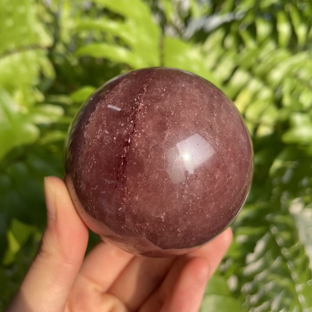 Function: Strawberry Quartz Sphere carries gentle, uplifting energy, symbolizing love, joy, and emotional healing. Polished into a smooth sphere, it radiates warm and balanced vibrations, making it ideal for meditation, heart-centered energy work, or as a charming decorative piece. Its soft pink tones with natural sparkle encourage positivity, self-love, and inner harmony, helping to soothe emotions, enhance optimism, and attract loving energy.