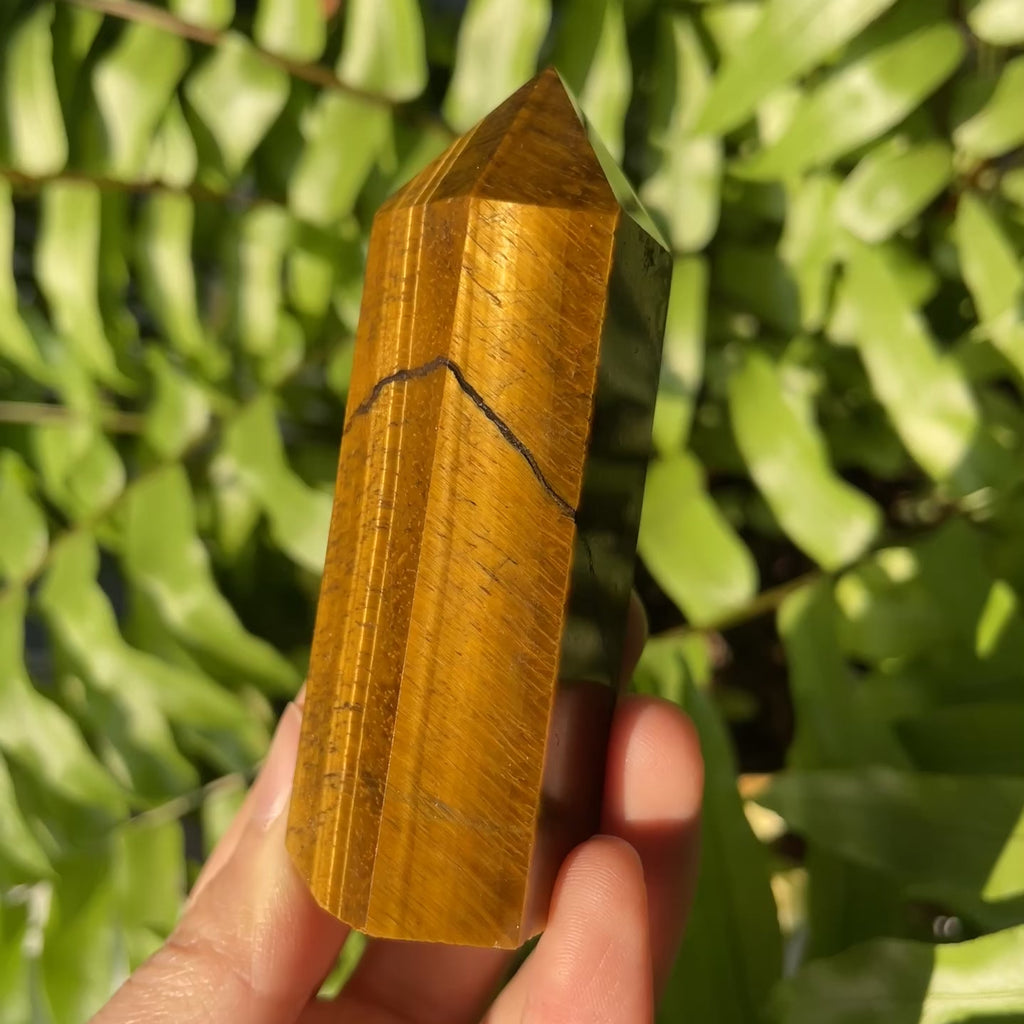 Function: Yellow Tiger Eye Point carries empowering, grounding, and protective energy, symbolizing confidence, courage, and personal strength. Polished into a sleek point, it is ideal for meditation, focus, and intention setting. Its golden-yellow bands with natural chatoyancy help enhance willpower, improve clarity, and promote balanced decision-making. Yellow Tiger Eye is often used to dispel fear, release stress, attract good fortune, and encourage motivation, resilience, and a strong sense of self-belief.